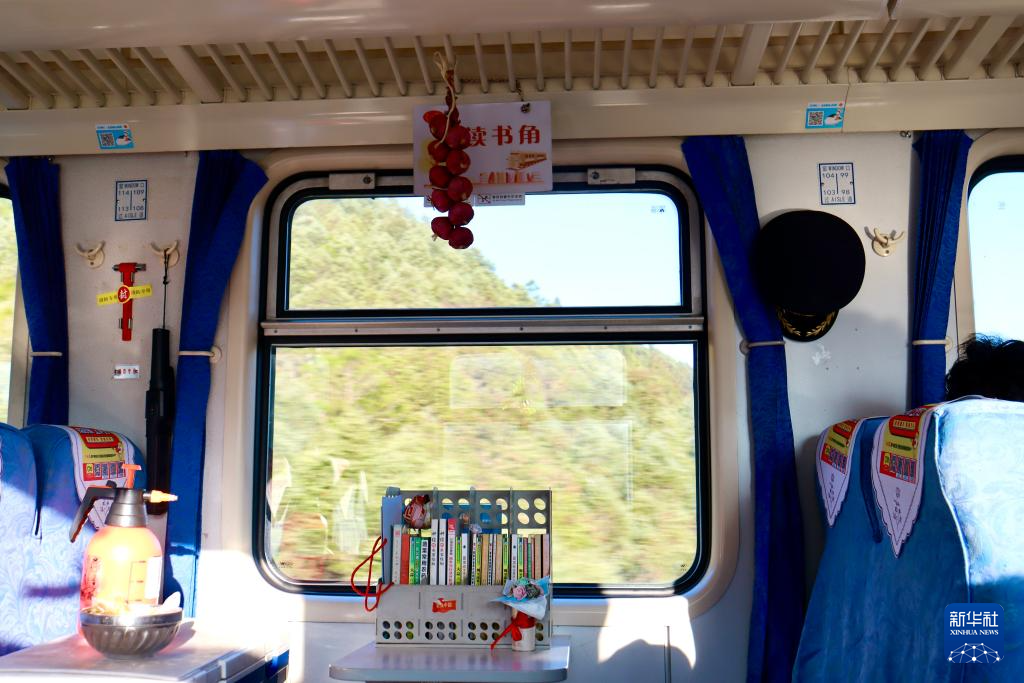 2月1日,5652次列车上的读书角。(王贤思 摄)