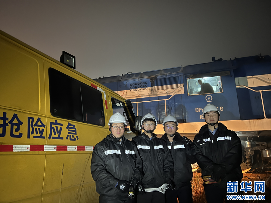 检修车间巡检组与“小黄车”合影(1月30日摄)。(中国铁路昆明局集团有限公司昆明机务段供图)