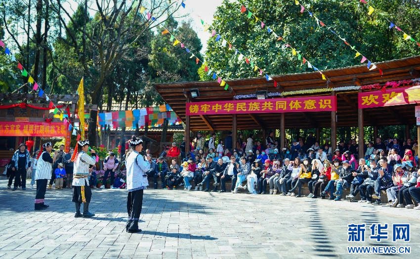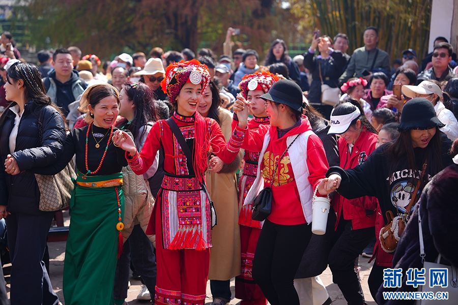 傈僳族拜年现场游人如织(2月15日摄)。新华网发(云南民族村供图)