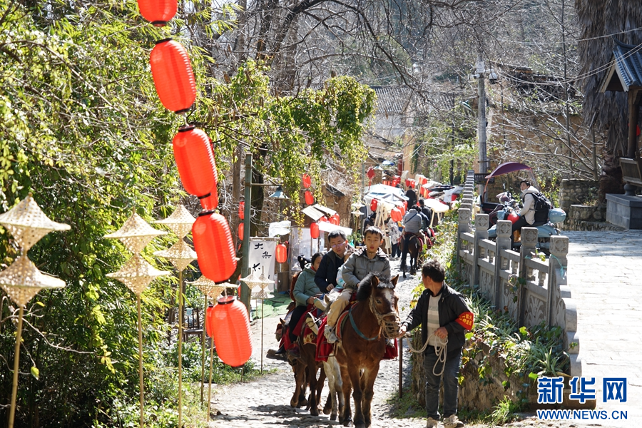 春节期间,游客在凤阳邑体验骑马游览茶马古道(摄于2月11日)。新华网发(大理市融媒体中心供图)