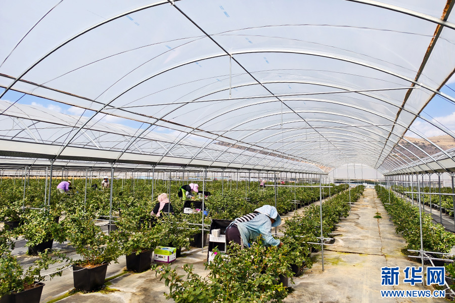 农户收获蓝莓(2月16日摄)。新华网发(陈华英 摄)