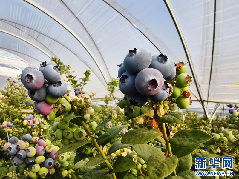 草坝镇蓝莓种植基地里的蓝莓(2月16日摄)。新华网发(陈华英 摄)