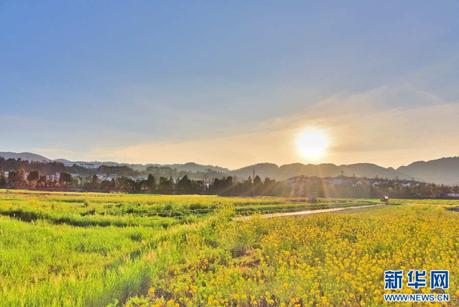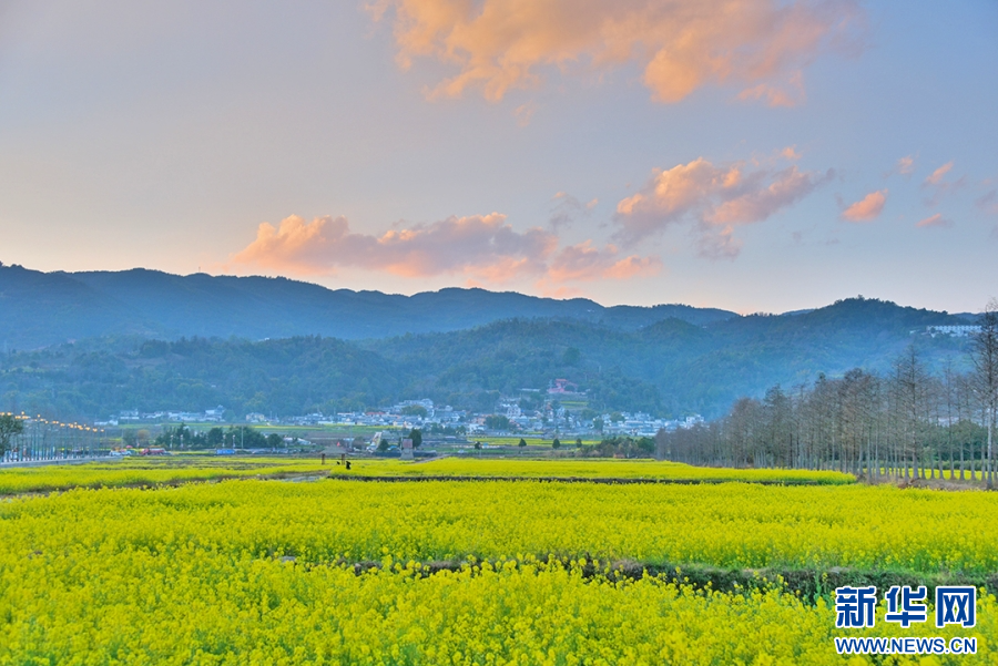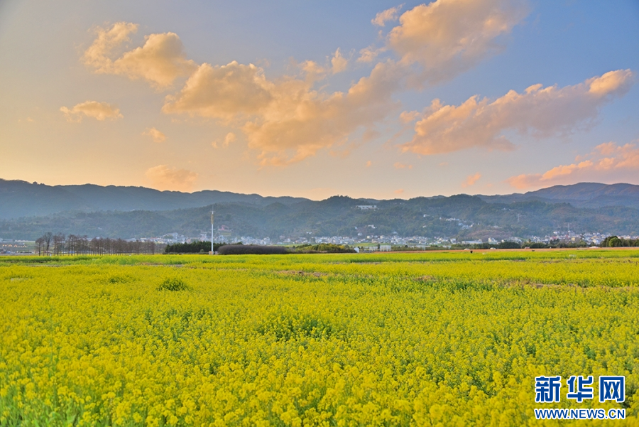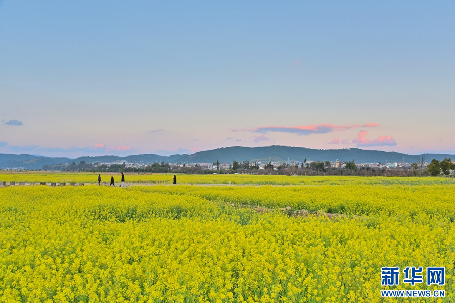 夕阳余晖下的油菜花(2月16日摄)。新华网发(吴再忠 摄)
