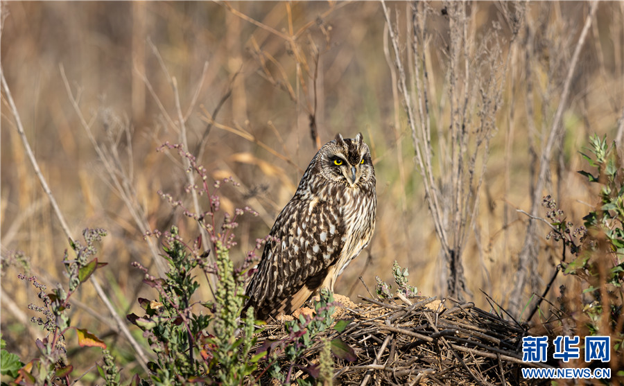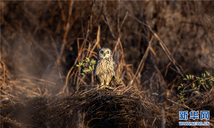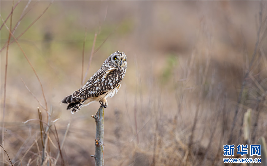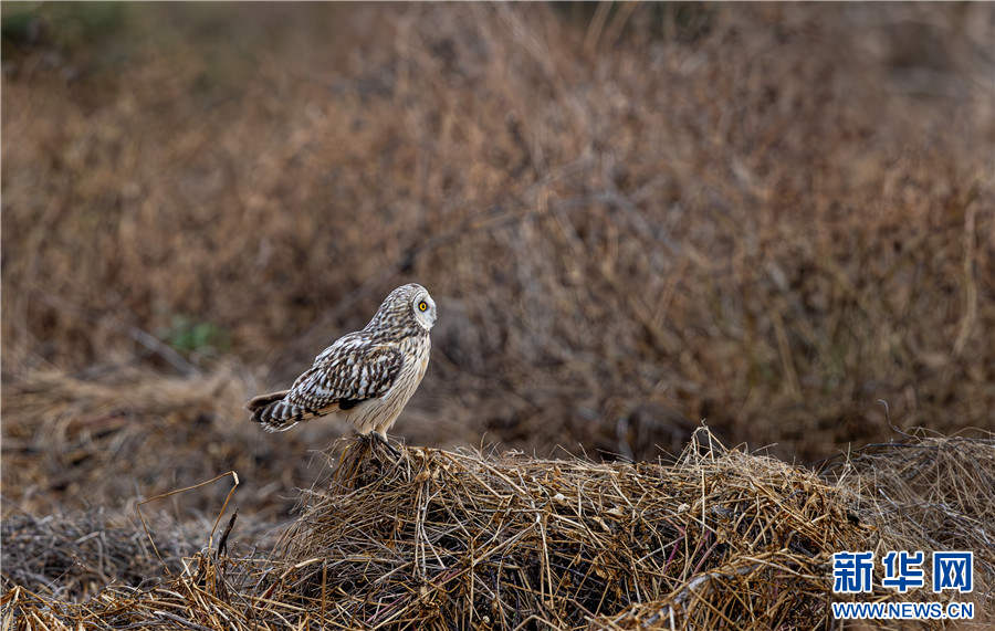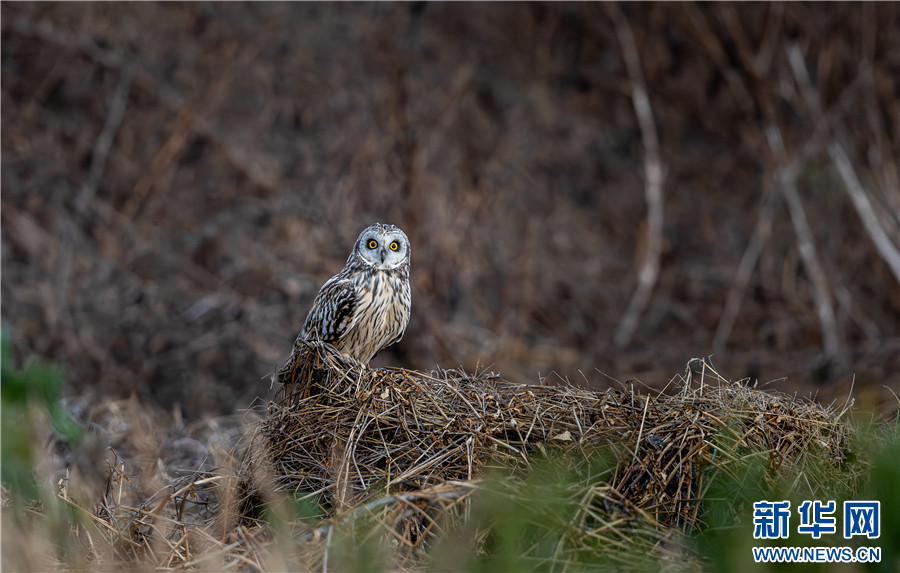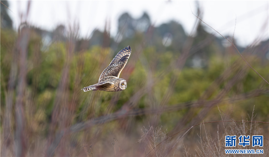 在昆明晋宁南滇池国家湿地公园拍摄到的短耳鸮(2月19日摄)。新华网发(宋光旭 摄)