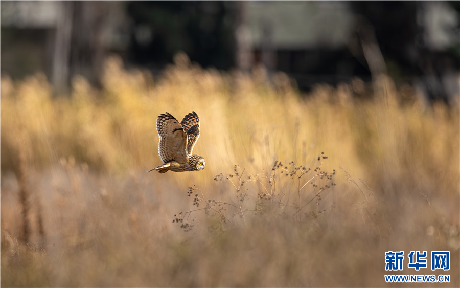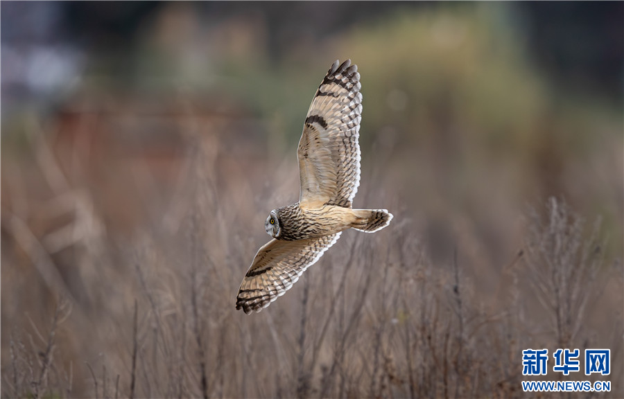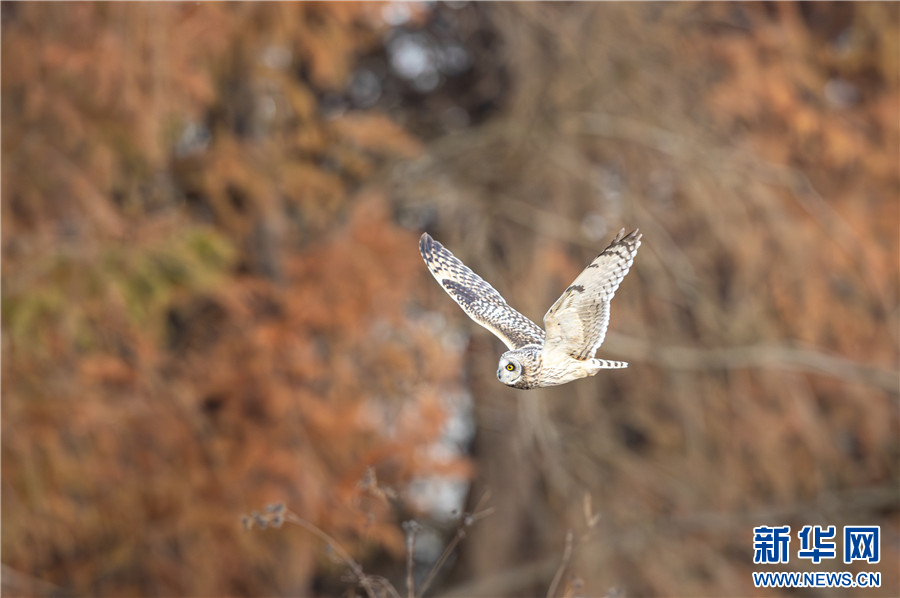 短耳鸮展翅飞翔(2月19日摄)。新华网发(宋光旭 摄)