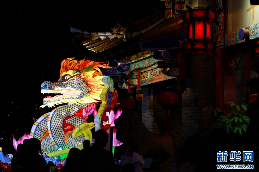 元宵赏灯,昆明翠湖就是一个好去处。为迎接龙年新春的到来,翠湖公园将传统灯会与园林艺术相结合,布置了水面灯光秀、灯光小品、灯光长廊等一系列景观。入夜,万千彩灯亮起,公园里流光溢彩、璀璨夺目,其中最壮观的是南湖塘长40米、宽4米、高6.5米的“龙腾盛世”主题水面灯光秀,此外还有麒麟献瑞、化蝶、魅力石榴等多组灯光主题小品,以及由满天星、蜂飞、蝶舞、灯笼等氛围灯组成的灯光长廊。