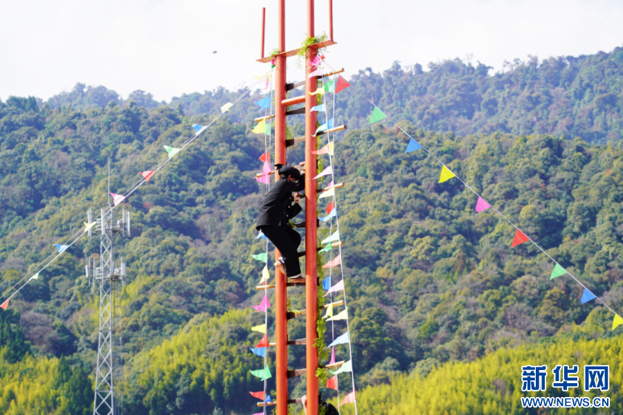 上刀山(2月19日摄)。新华网发(颜秋 摄)