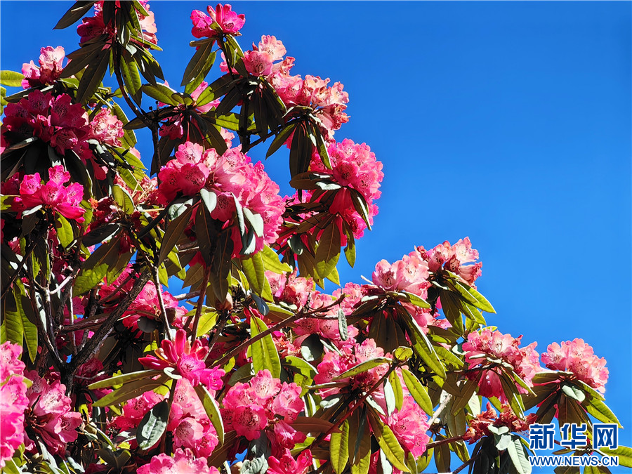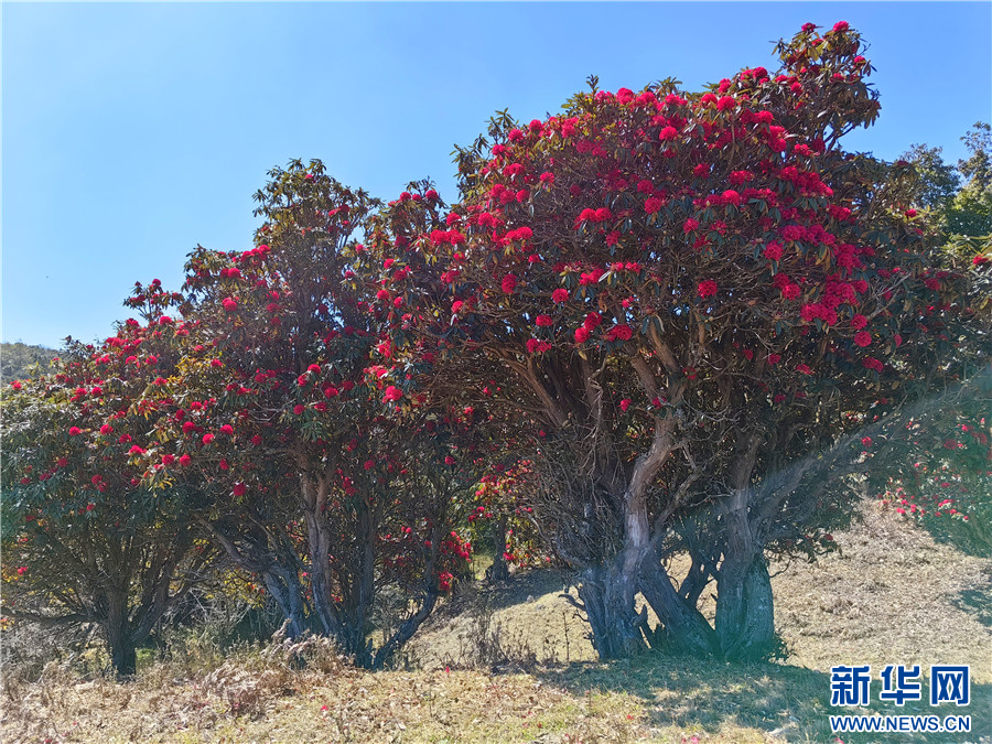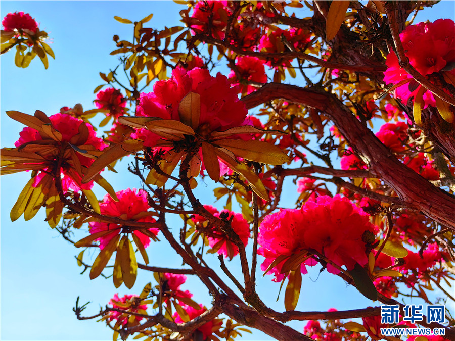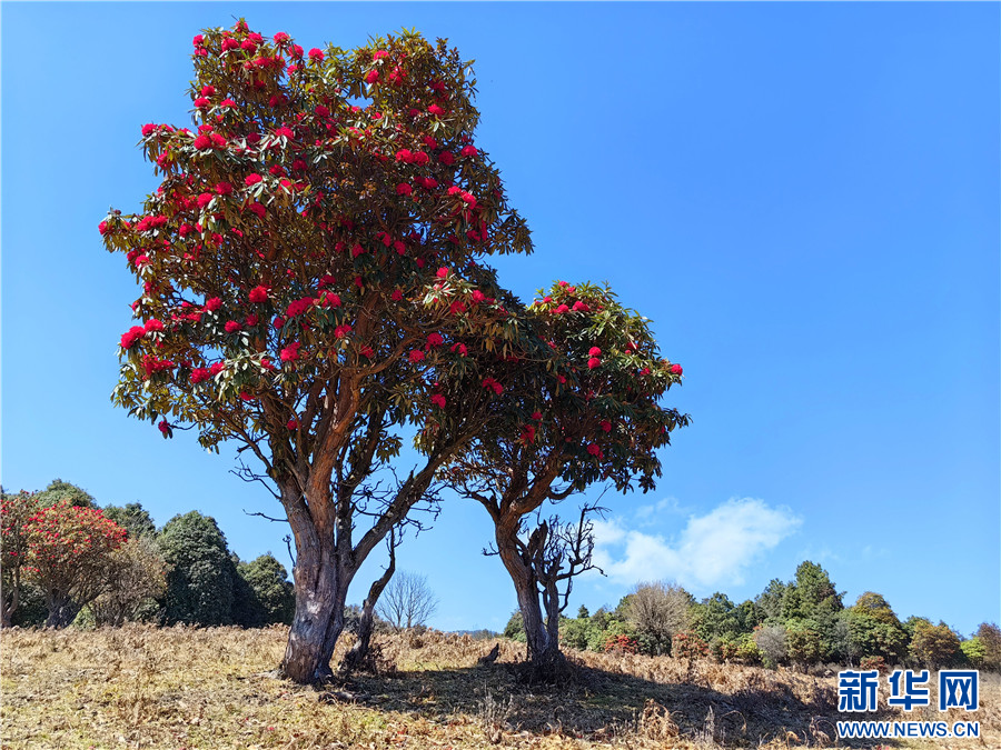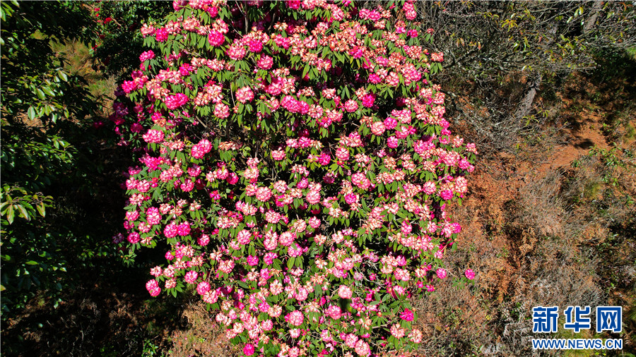 云南省临沧市凤庆县洛党镇琼岳村,马缨花如约绽放(2月20日摄)。新华网发(凤庆县融媒体中心供图)