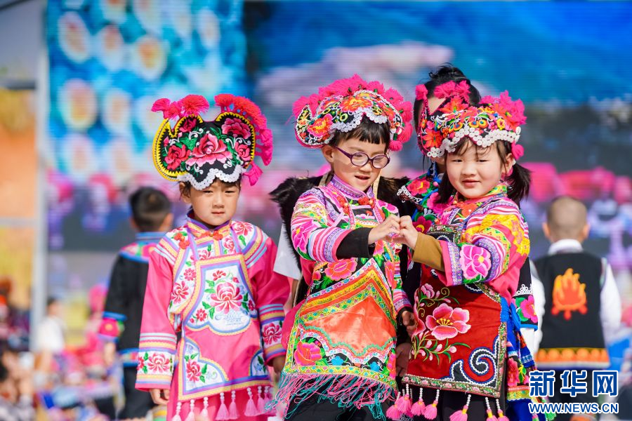 2月23日,云南省楚雄彝族自治州永仁县举办“新年游·新年俗”——非遗(彝绣)服装服饰文旅体验活动,来自全国上百位儿童齐聚永仁体验彝族赛装(彝绣)文化,展示秀场风采。