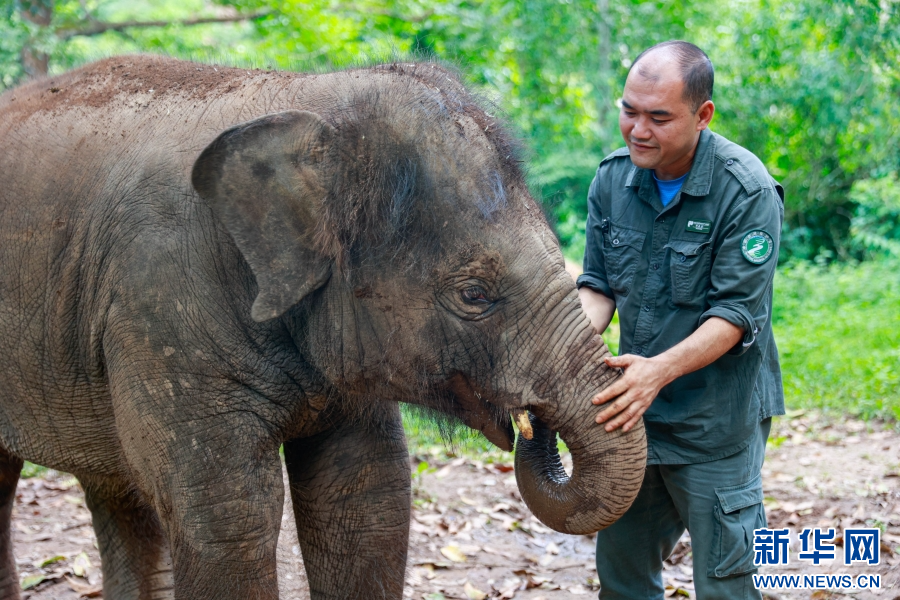 西双版纳亚洲象救护与繁育中心的“象爸爸”陈继铭