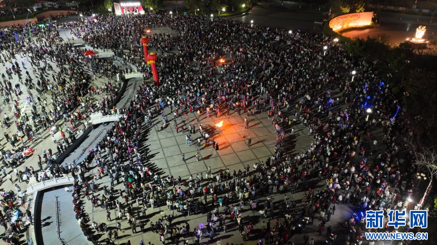 群众在广场上打跳(2月24日摄)。新华网发(永仁县融媒体中心供图)