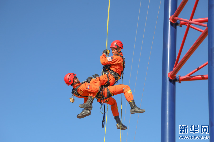 绳索救援训练 (2月21日摄)。新华网发(丽江市森林消防支队供图)