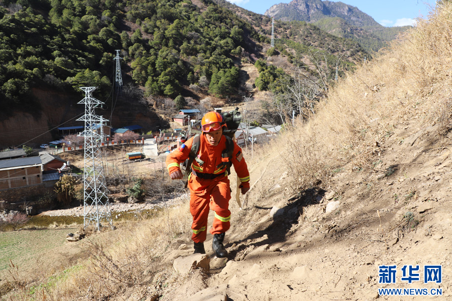 野外水泵架设与撤收训练(2月20日摄)。新华网发(丽江市森林消防支队供图)