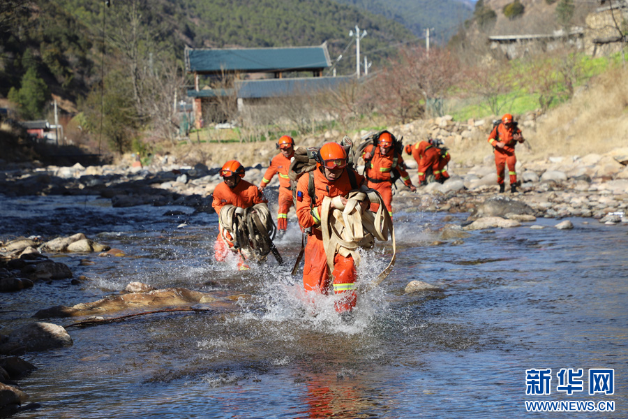 地震救援训练 (2月21日摄)。新华网发(丽江市森林消防支队供图)
