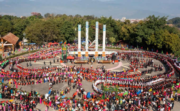 万人齐舞!云南盈江喜迎目瑙纵歌节