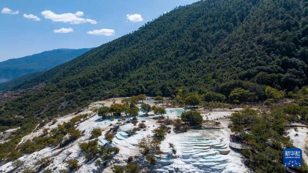3月10日在香格里拉市三坝乡拍摄的白水台一景(无人机照片)。