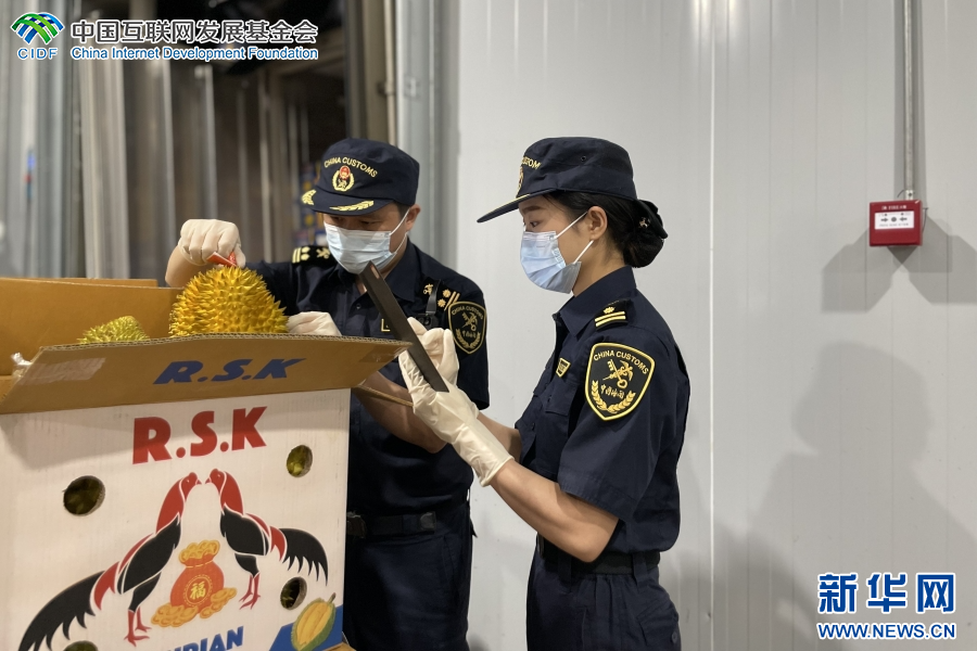 海关工作人员正在对入场货物进行查验(资料图)。新华网发(勐腊海关 供图)