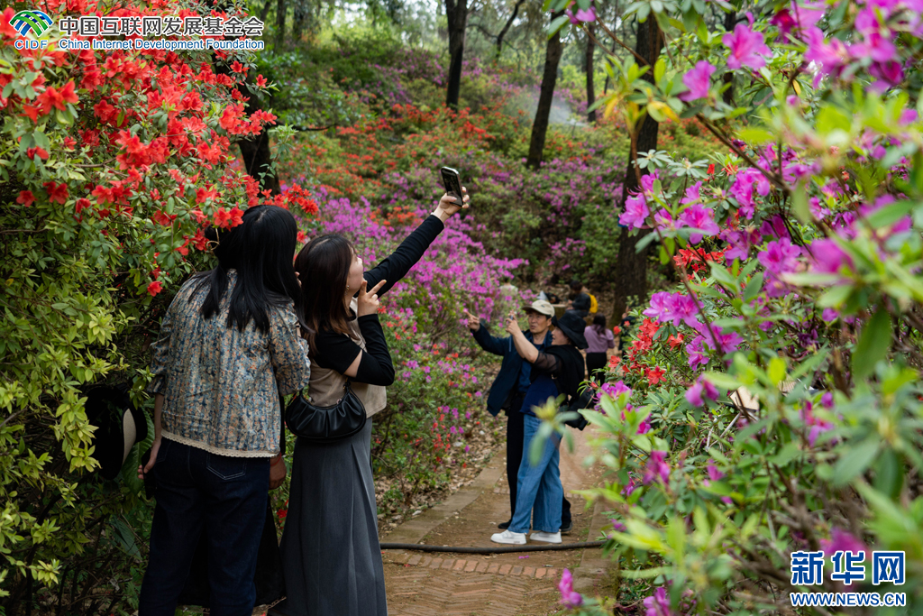 近日,云南省昆明市黑龙潭公园内的杜鹃花竞相绽放,美不胜收,吸引了不少游客前来踏青赏花。