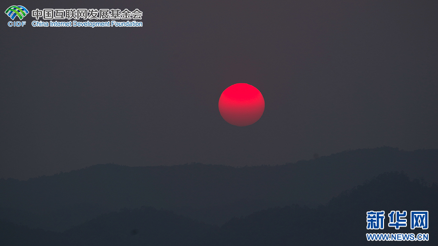 在云南普洱翁基古寨拍摄到的日落(4月1日摄)。新华网发(徐华陵 摄)