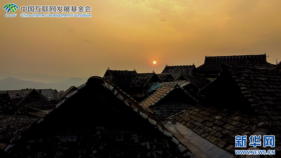 落日余晖下的云南普洱翁基古寨(4月1日摄)。新华网发(徐华陵 摄)