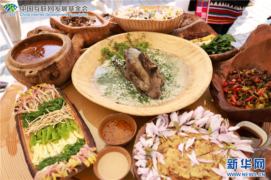 各式各样的少数民族美食(4月1日摄)。新华网发(澜沧县融媒体中心 供图)