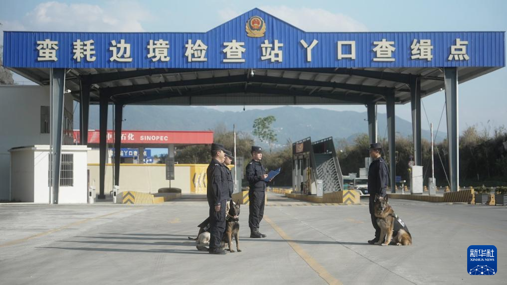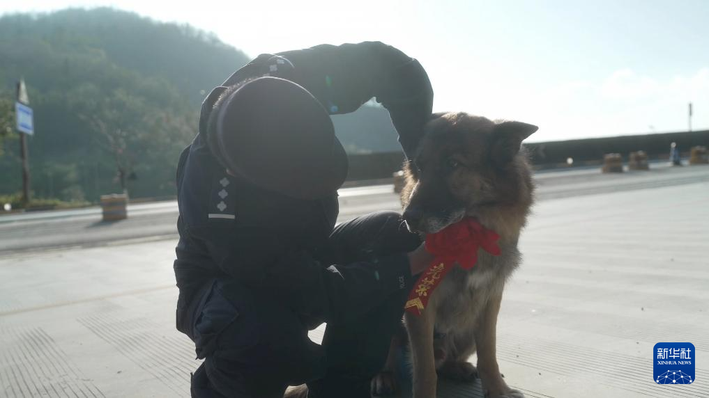 近日,云南出入境边防检查总站红河边境管理支队蛮耗边境检查站警犬“龙虎”迎来了退役的日子,战友们为它举行了庄重的退役仪式,“后辈”警犬为它衔来大红花。