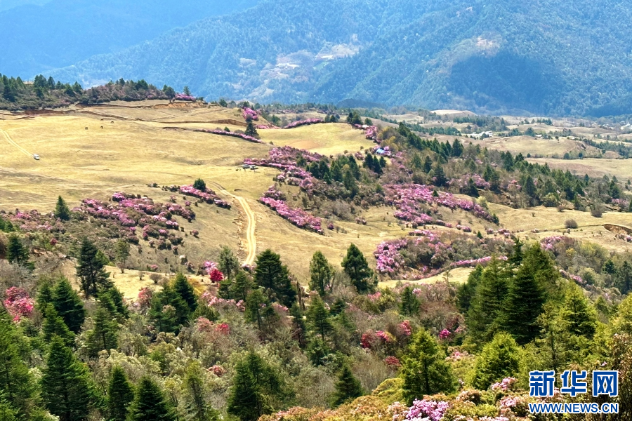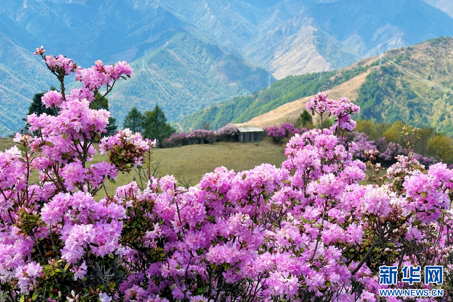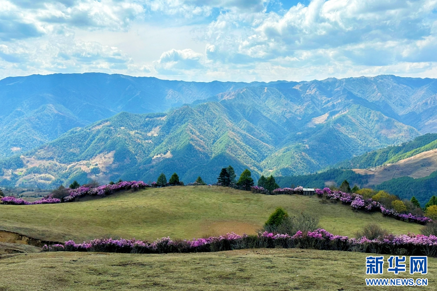 杜鹃花绽放于高山之上(4月8日摄)。新华网发(剑川县融媒体中心供图)