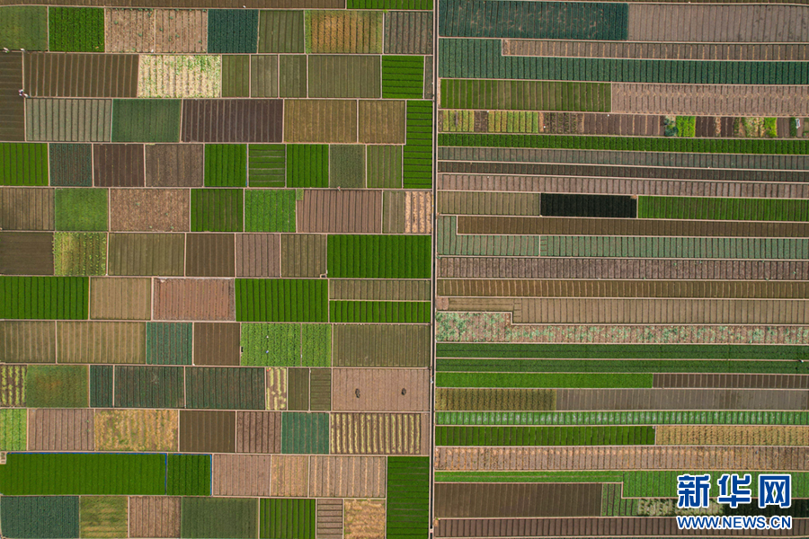 平整规范的土地阡陌纵横、色彩斑斓(4月6日摄)。新华网发(杨俊鹏 摄)