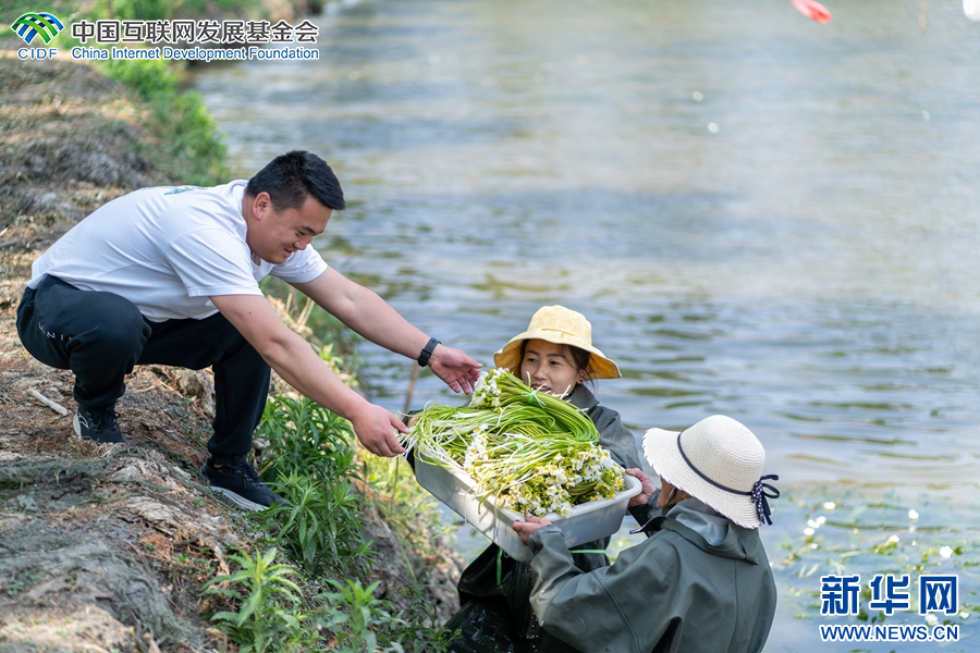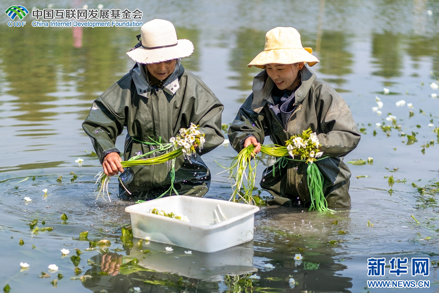 大理洱源,农户正在采收海菜(摄于4月16日)。新华网发(罗新才 摄)