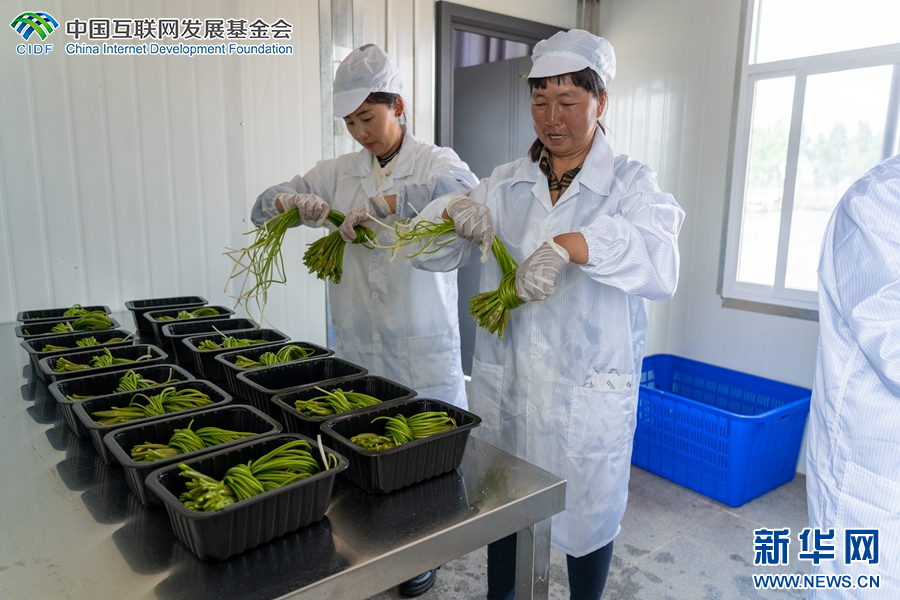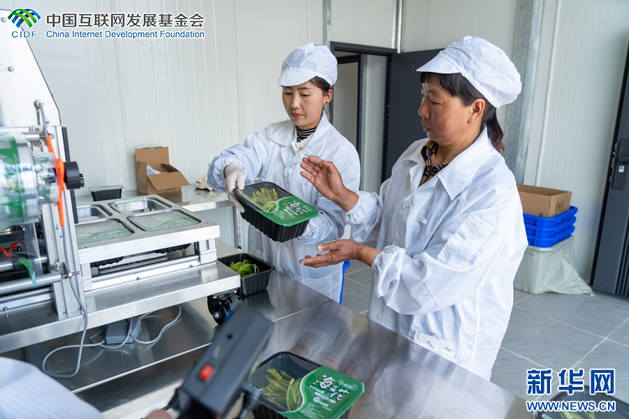 洱源海菜花研究基地,农户将海菜密封包装(摄于4月16日)。新华网发(罗新才 摄)