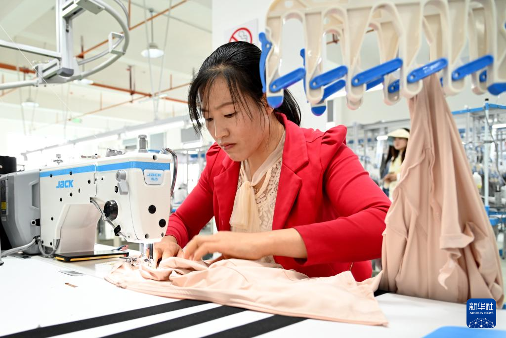 4月20日,在云南省镇雄县呢噜坪纺织服装产业园,工人正在生产防晒服装。(云南省人力资源和社会保障厅供图)