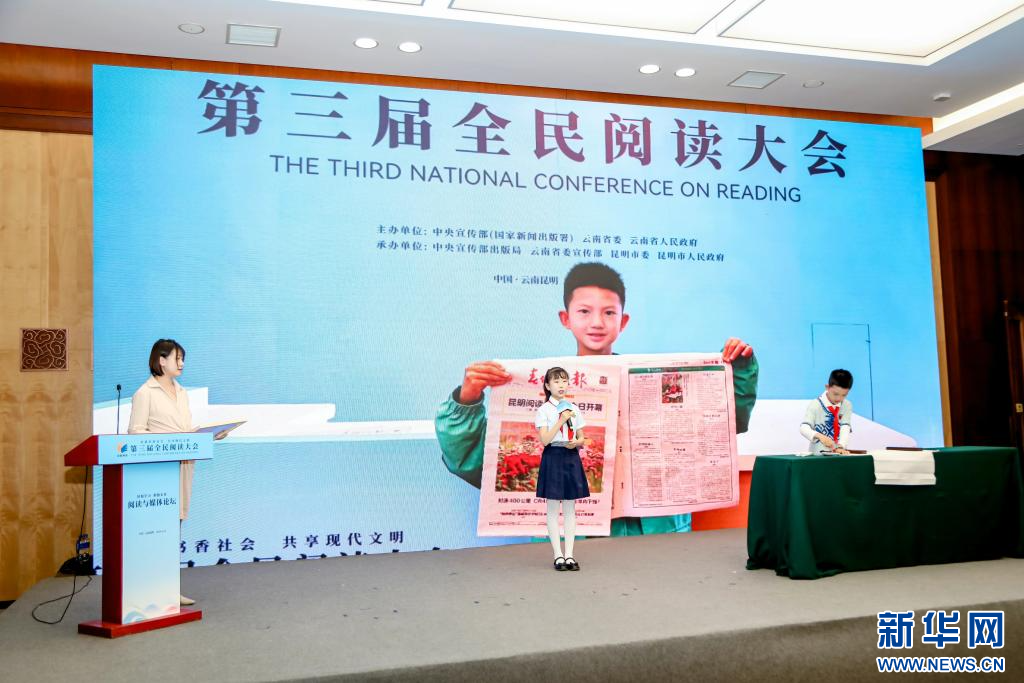 新华网昆明4月24日电 4月23日,第三届全民阅读大会“阅读与媒体”论坛在云南昆明举行。报业媒体代表、知名学者、师生代表等百余位嘉宾共聚一堂,聚焦读报学习、拥抱未来的主题,围绕担负新的文化使命、书写时代报业华章,集中展示报业在自身建设新型主流媒体的同时,积极以全媒体形态提供优质内容供给,培育公众阅读风尚,凝聚社会文化共识所发挥的积极作用。