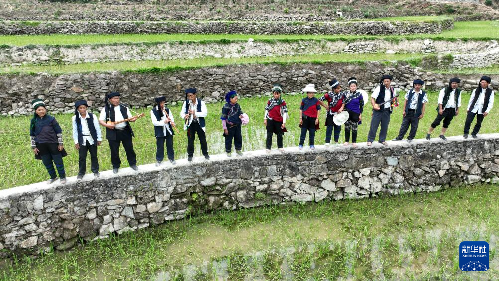 在元阳县沙拉托乡的哈尼梯田缓冲区,当地举行“开秧门”活动,村民们在田间地头祈福,他们载歌载舞,迎接春耕的到来。哈尼族多声部民歌州级传承人罗们妹说:“这是我们老一辈传承下来的民俗,一边栽秧一边唱歌,一边跳乐作舞,意味着稻谷会饱满、丰收。”
