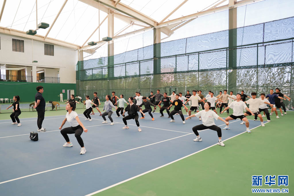 李冬指导啦啦操队员训练(3月5日摄)。新华网 范芳钰 摄