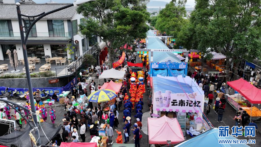 指战员在三月街开展防火宣传(5月2日摄)。新华网发(陈胜瑶 摄)