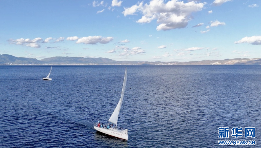 近日,在云南省澄江市,众多游客乘船观赏抚仙湖美景。抚仙湖是我国最大的深水型淡水湖泊,这里景色优美,变幻万千,美丽的湖景与山景使人流连忘返。(完)(澄江市委宣传部 李宗臻 路瑶 胡青山)