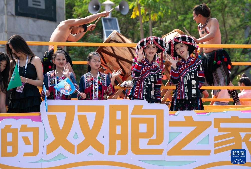 双胞胎们在云南墨江参加双胞胎风情巡游活动(5月2日摄)。新华社记者陈欣波 摄