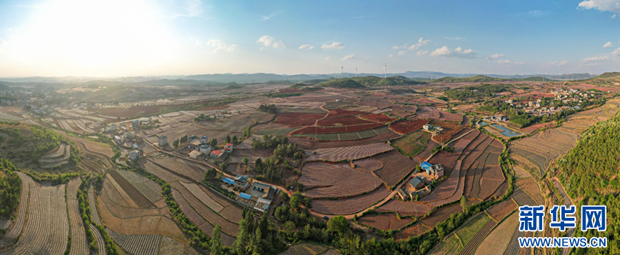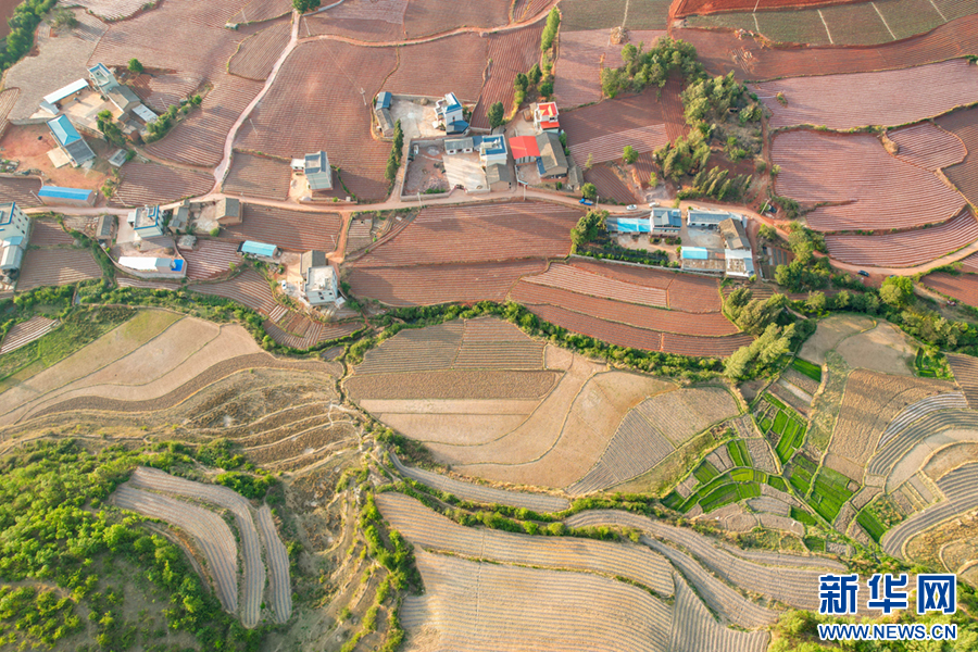 云南省曲靖市沾益区炎方乡拍摄的红土地(5月3日摄)。新华网发(杨俊鹏 摄)