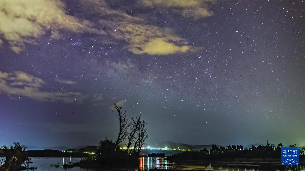 近年来,滇池保护治理工作持续推进,云南晋宁南滇池国家湿地公园的生态环境显著改善,夜幕降临,水面如镜,映照星河,通过摄影师的镜头,浩瀚无垠的璀璨星空呈现在眼前。
