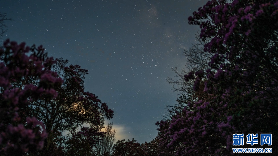 大理马耳山,杜鹃花与繁星“同框”(视频截图)。