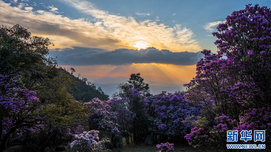 近日,云南省大理白族自治州洱源县马耳山的高山杜鹃竞相绽放,在摄影师的镜头里,簇簇繁花顺着山势铺展开来,连绵数公里,景色醉人。特别是清晨和日暮,盛放的杜鹃花与朝霞、晚星“同框”,日升云动、斗转星移间,高山杜鹃的美多了一份壮阔与诗意,令人心驰神往。(罗新才 摄影报道)
