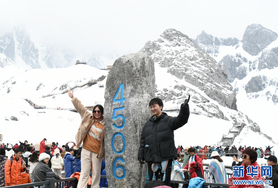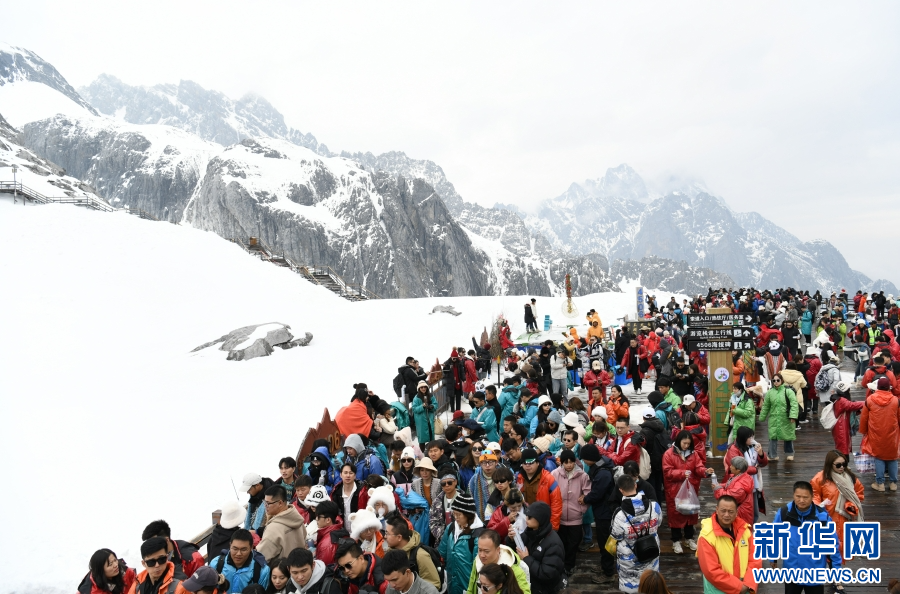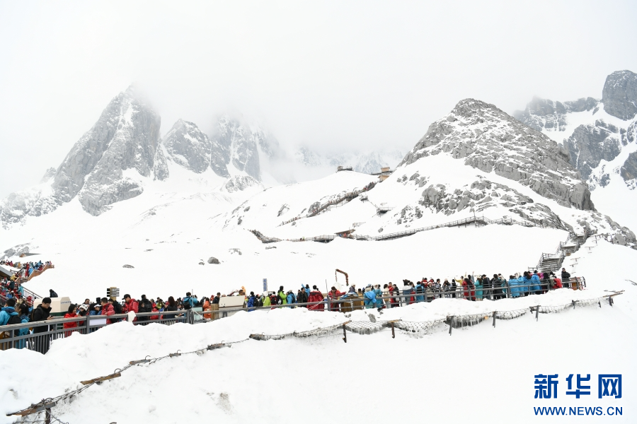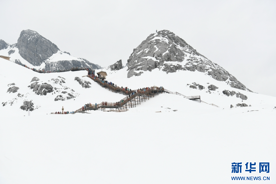 初夏,地处云南省丽江市的玉龙雪山景区开启“夏雪”模式。新华网发(赵庆祖 摄)