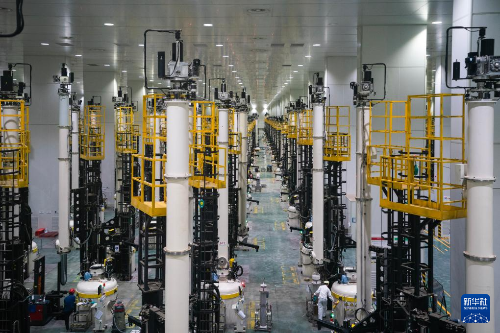这是5月15日在曲靖隆基硅材料有限公司拉晶车间内拍摄的拉晶炉。