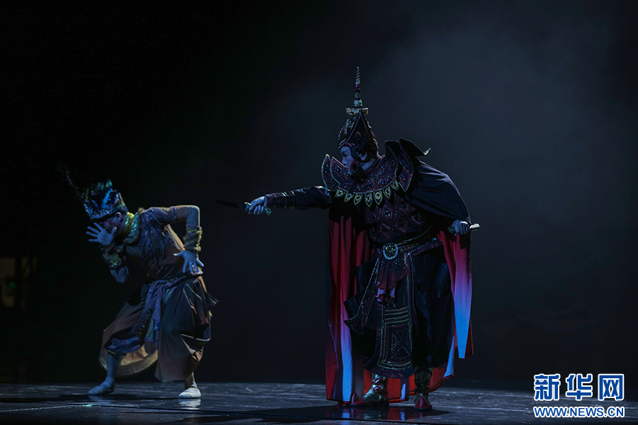 傣族章哈剧《乌莎巴罗》“第四场·大战”表演现场(5月17日摄)。新华网发(徐华陵 摄)