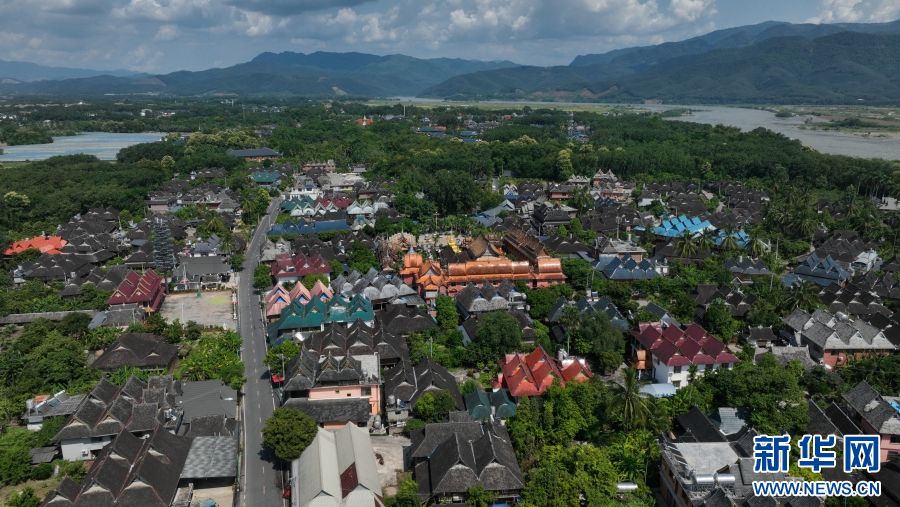 航拍视角下的西双版纳傣族园景区(2023年9月14日摄)。新华网发(刘云 摄)