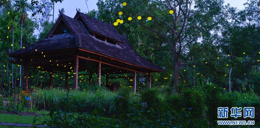 中国科学院西双版纳热带植物园,流萤飞舞,星星点点,如梦如幻(4月23日摄)。新华网发(张娇娇 摄)