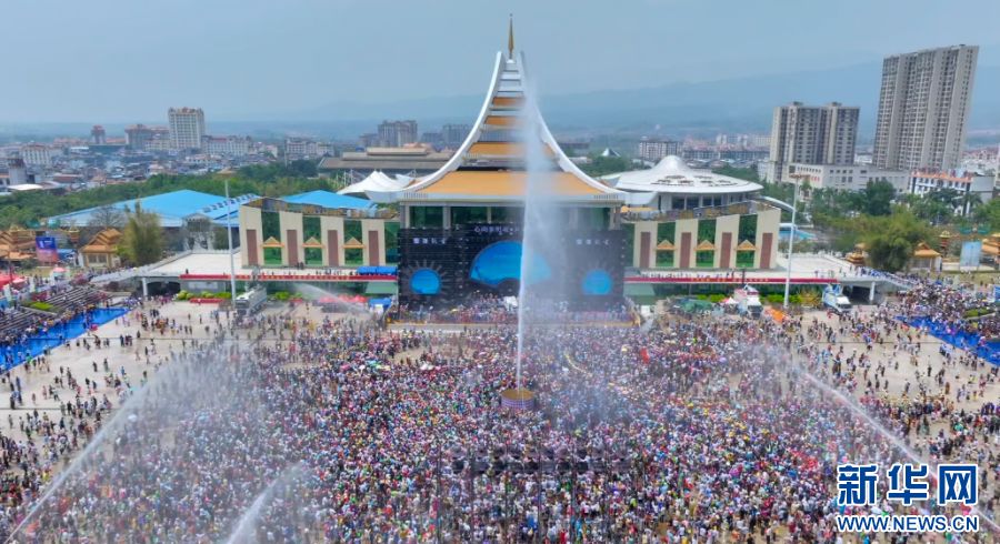 芒市泼水节热闹开幕(4月12日摄)。新华网发(芒市融媒体中心供图)