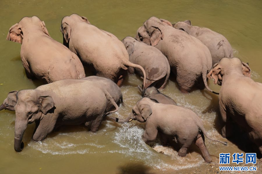 野象家族齐聚野象谷戏水(资料图)。新华网发(柴静 摄)
