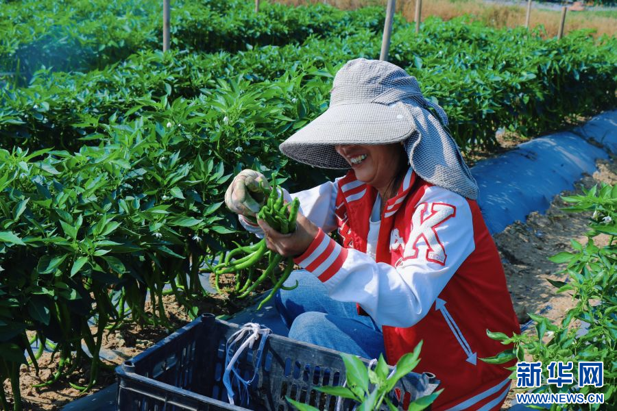 采摘工人正在采摘辣椒(摄于5月14日)。新华网发(景谷县融媒体中心供图)