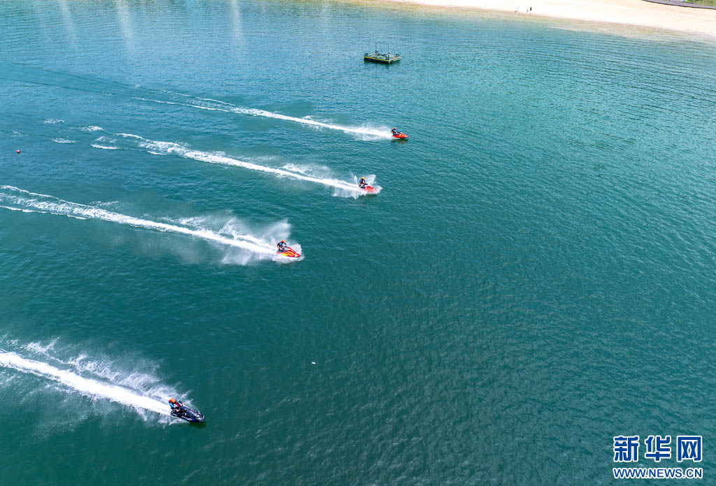 精彩纷呈的“水上飞人”节目表演(5月18日摄)。新华网发(曾三东 摄)
